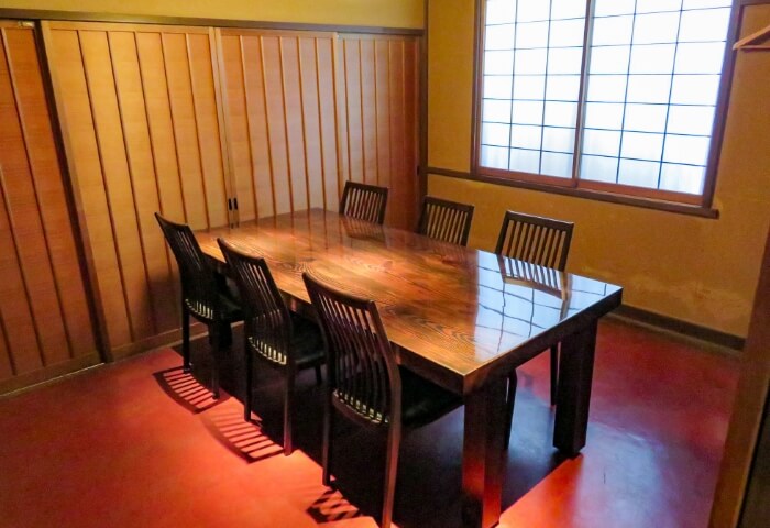さかばやしの1階には、少人数のお客様用のフロア席や、18名様までご利用いただける個室席がございます。