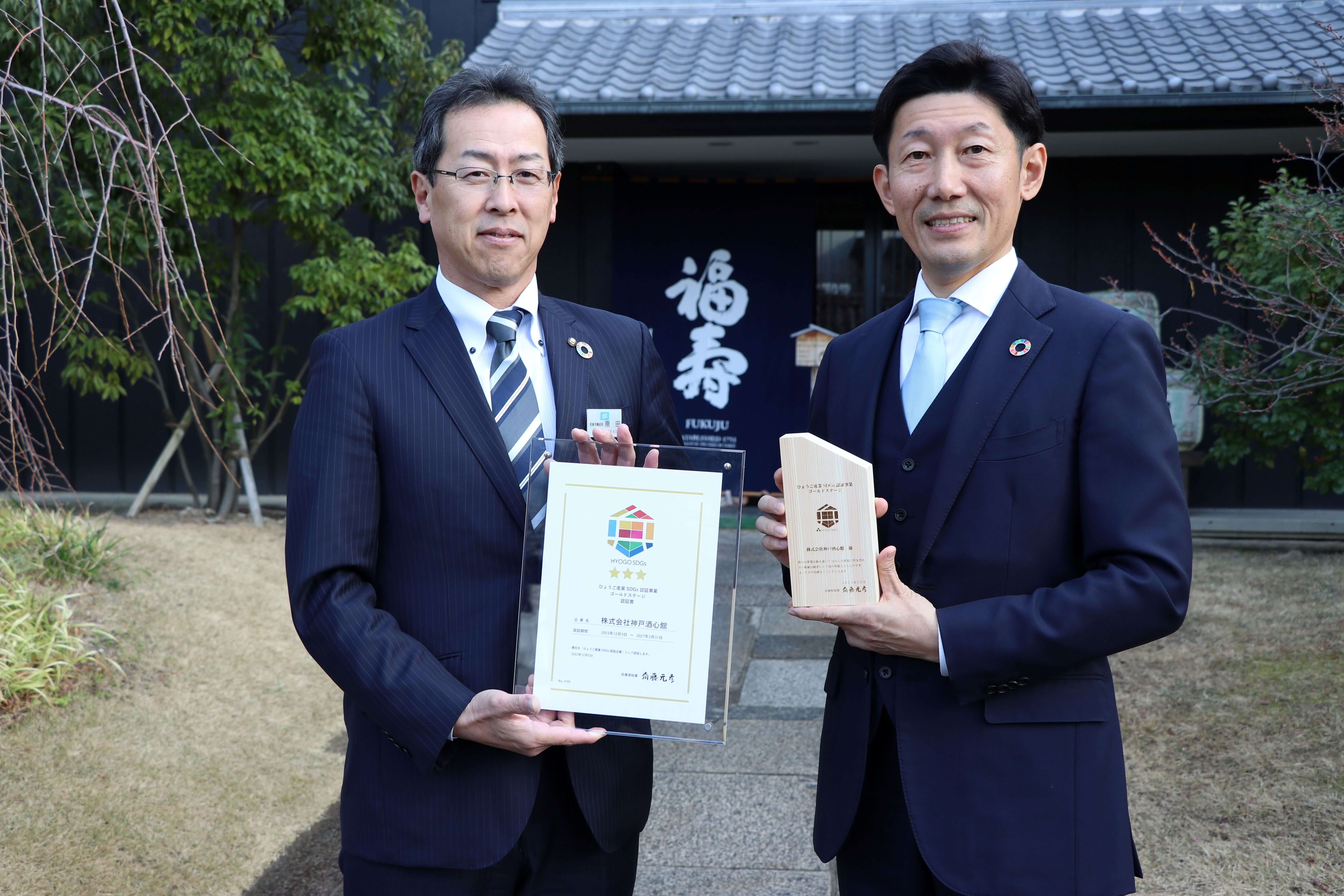 生産工程のデジタル化により、品質と生産性向上、さらに地球温暖化防止、水資源の保全と節水、酒粕の再利用、ビン(ボトル)の再資源化、生物多様性への配慮、有害物質への対応に取り組むなど、環境価値と事業価値を両立したことが評価され、日本酒の蔵元として初めて財務大臣賞を受賞しました。