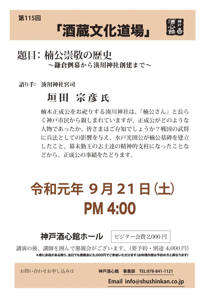 【第115回酒蔵文化道場】楠公崇敬の歴史