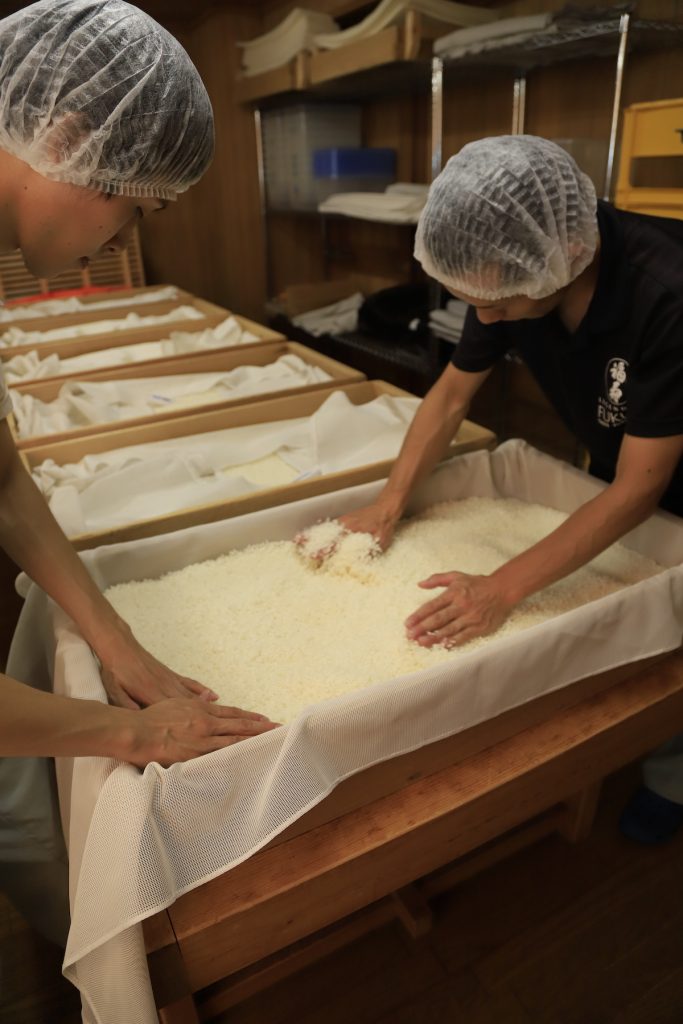 「福寿 純米吟醸」は若手の蔵人8名を中心に、日本一の酒米生産地である地元兵庫県産の酒米と六甲山の伏流水を原料として丁寧に手造りで醸されます。
