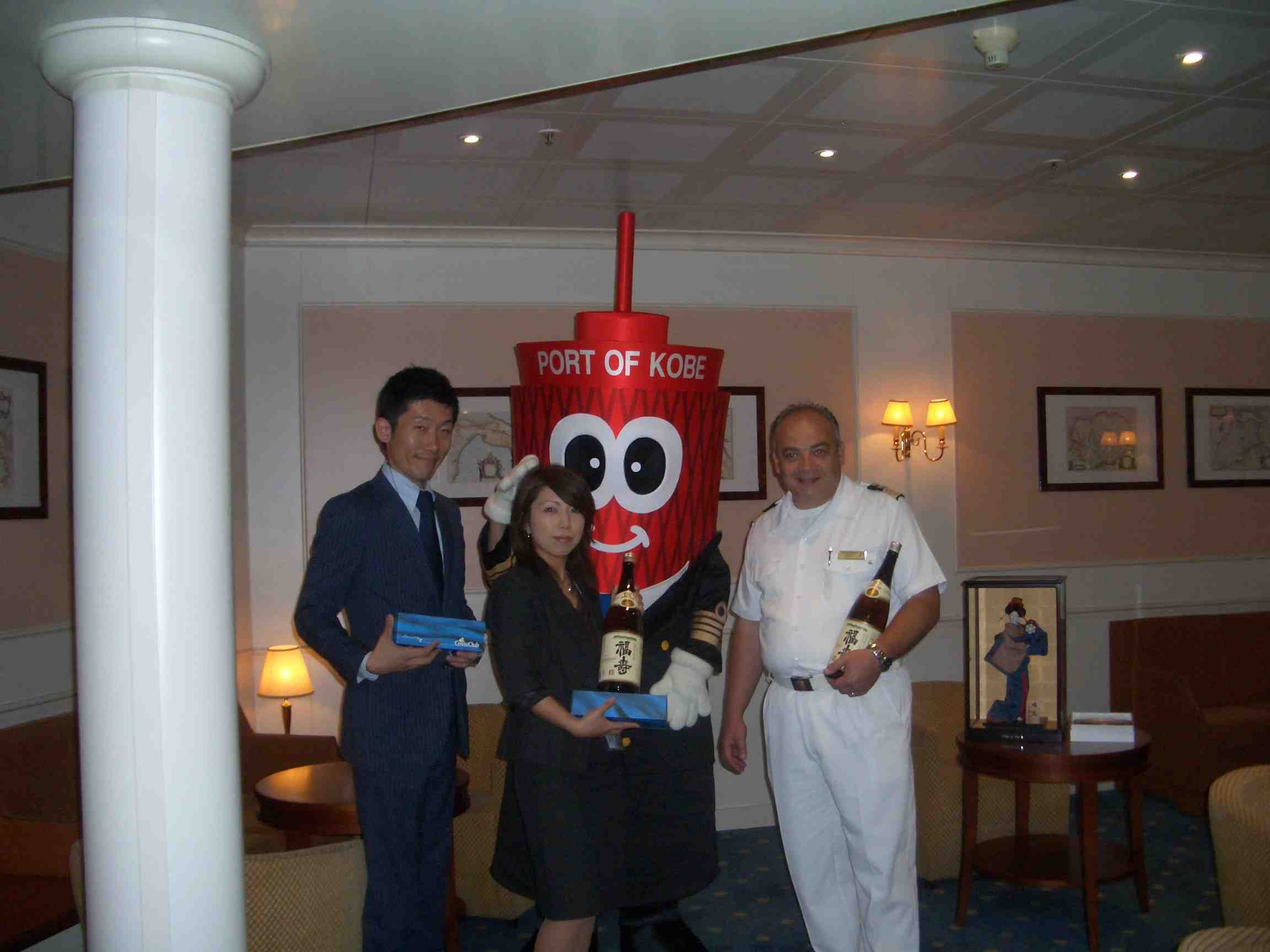 6月27日(金)外国客船「コスタ・アレグラ」が神戸ポートターミナルに初入港しました。 寄港後、船内では歓迎セレモニーが行われ、当社副社長より清酒「福寿」をキャプテンであるSalvatore Donatoさんにプレゼントさせていただきました。 私たちの地元である神戸が、世界から訪れる方々に愛される国際港湾都市であることをあらためて感じました。 そして、酒がSAKEとして世界の方に楽しんでいただけると幸せです。