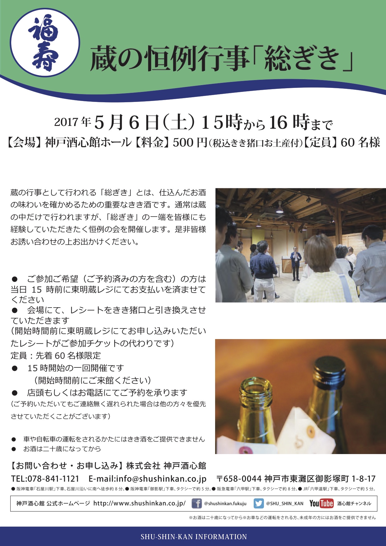 蔵の行事として行われる「総ぎき」とは、仕込んだお酒の味わいを確かめるための重要なきき酒です。通常は蔵の中だけで行われますが、「総ぎき」の一端を皆様にも経験していただきたく恒例の会を開催します。