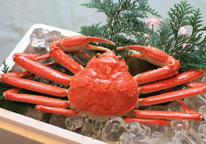 ここで「カニ」について少しふれておきますが、人によっては、「越前ガニ」より「松葉ガニ」の方が上という言葉が聞かれますが、実は「越前ガニ」も「松葉ガニ」も同じで、全て「ズワイガニ」のことを指します。北陸ではそれを「越前ガニ」と、山陰では「松葉ガニ」と呼んでいるだけなのです。「ズワイガニ」属の「カニ」は一般的に三つの種が流通されており、「越前ガニ」や「松葉ガニ」と呼ばれる「ズワイガニ」と、「大ズワイガニ」、「紅ズワイガニ」がそれに当たります。