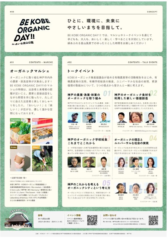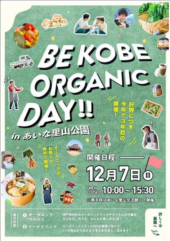 KOBEオーガニック推進協議会(市内有機農業者団体・兵庫六甲農業協同組合・神戸市)によるオーガニックのお祭り「BE KOBE ORGANIC DAY in あいな里山公園」が開催されます。