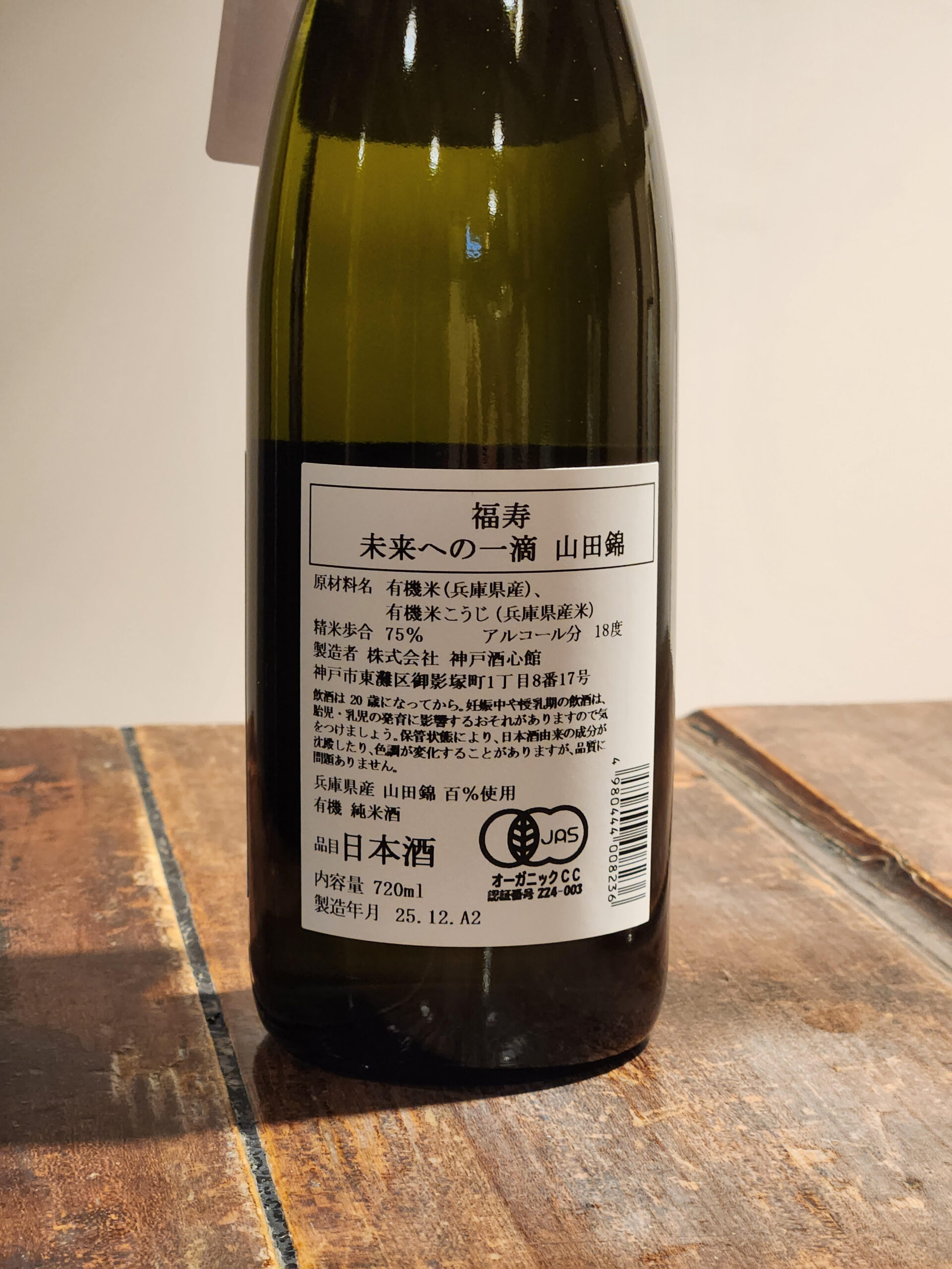 当社では、本年、有機JAS認証の純米酒「福寿 未来への一滴 山田錦」の販売開始しました。