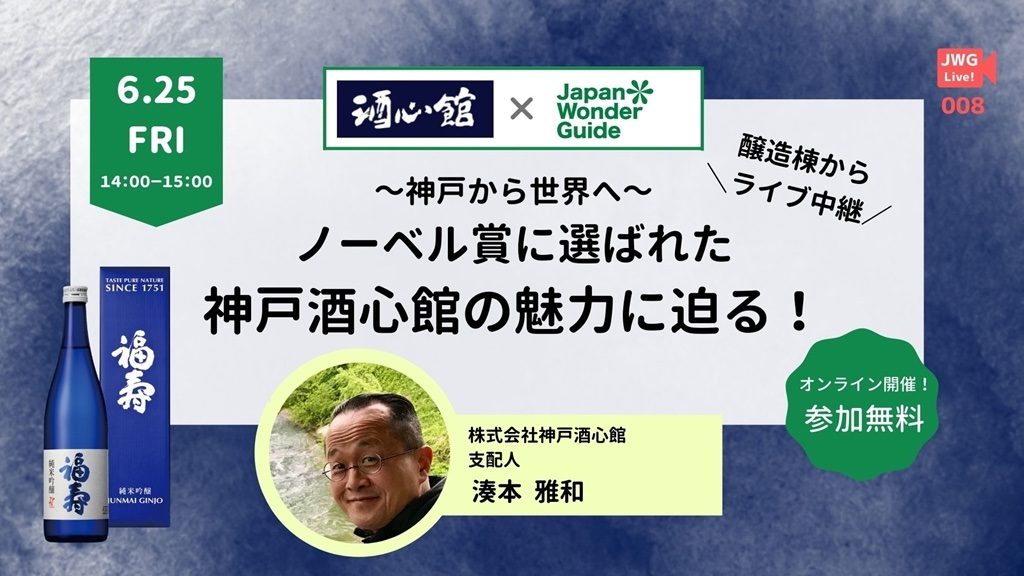 「~神戸から世界へ~ノーベル賞に選ばれた神戸酒心館の魅力に迫る!」と題し、JapanWonderGuide(JWG)の無料オンラインイベントで灘五郷と福寿のご紹介をさせていただきます。 通訳案内士団体以外の方も参加いただ […]