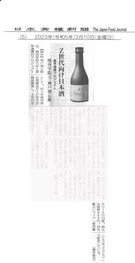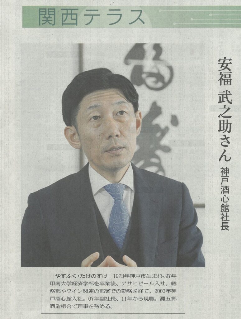 日本経済新聞社が発行する「日本経済新聞」の2024年4月3日の夕刊「関西テラス」のコーナーで「持続可能な酒造りへSDGs」の見出しで神戸酒心館社長の安福武之助が紹介されました。 持続可能な酒造りへSDGs 神戸酒心館・安 […]