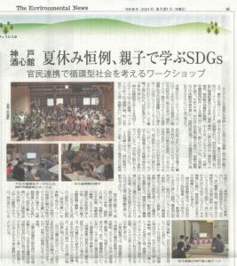 環境新聞で「親子で学ぶSDGs 夏休み自由研究お助けワークショップ2024」で紹介されました(2024.8.21)