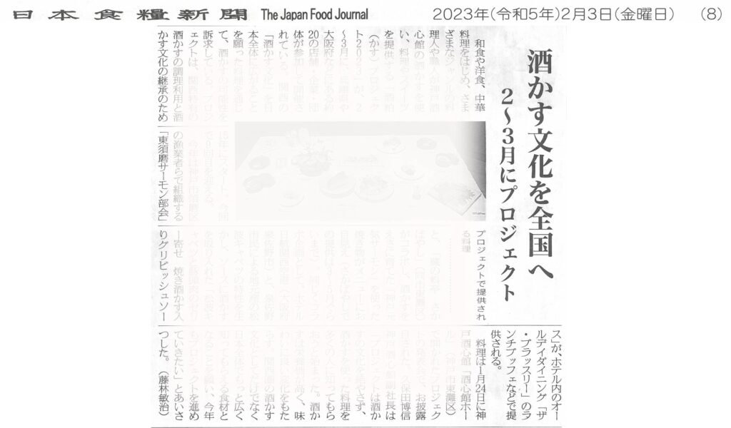 『酒粕プロジェクト2023』が日本食糧新聞(2023.2.3)で紹介されました
