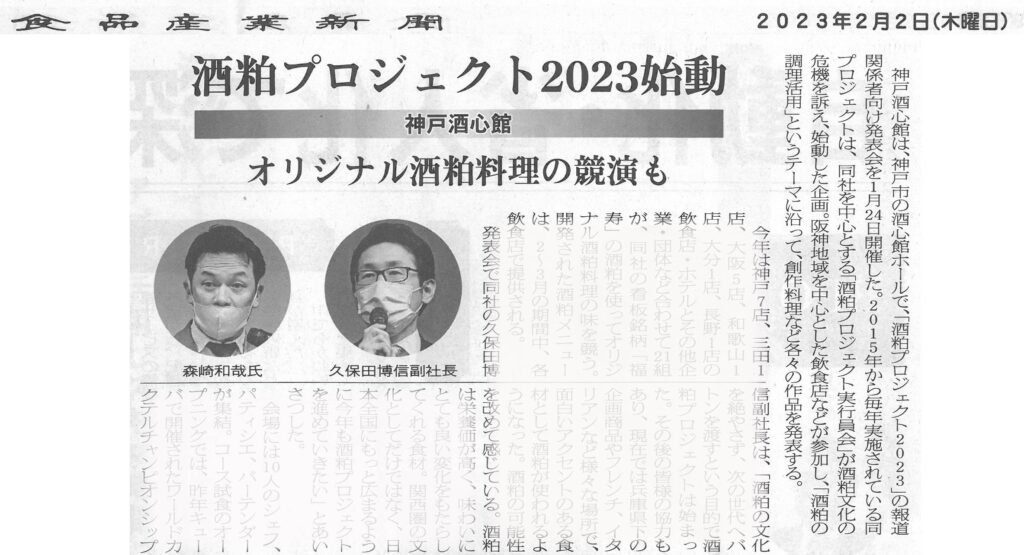 『酒粕プロジェクト』が食品産業新聞(2023.2.2)で紹介されました