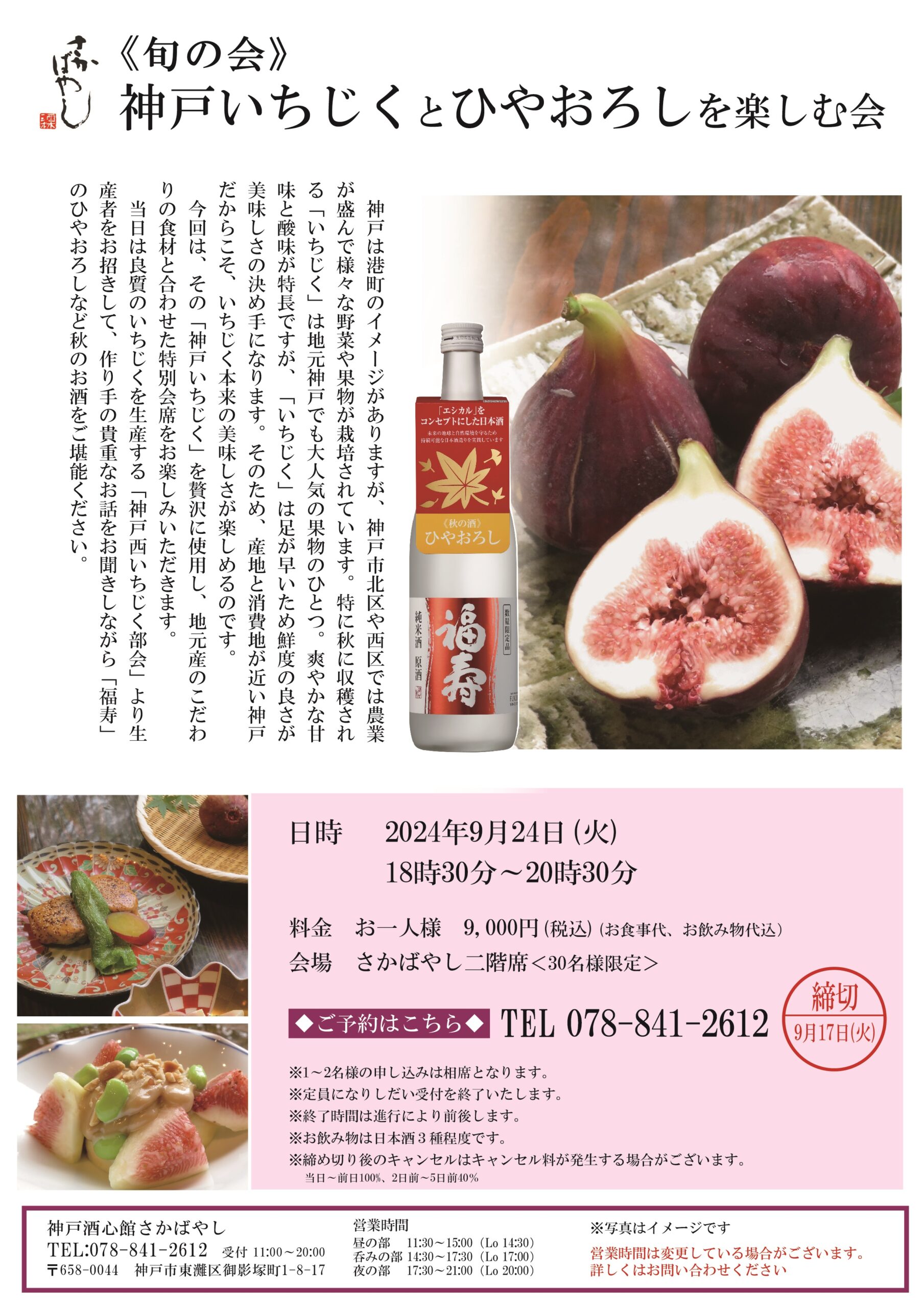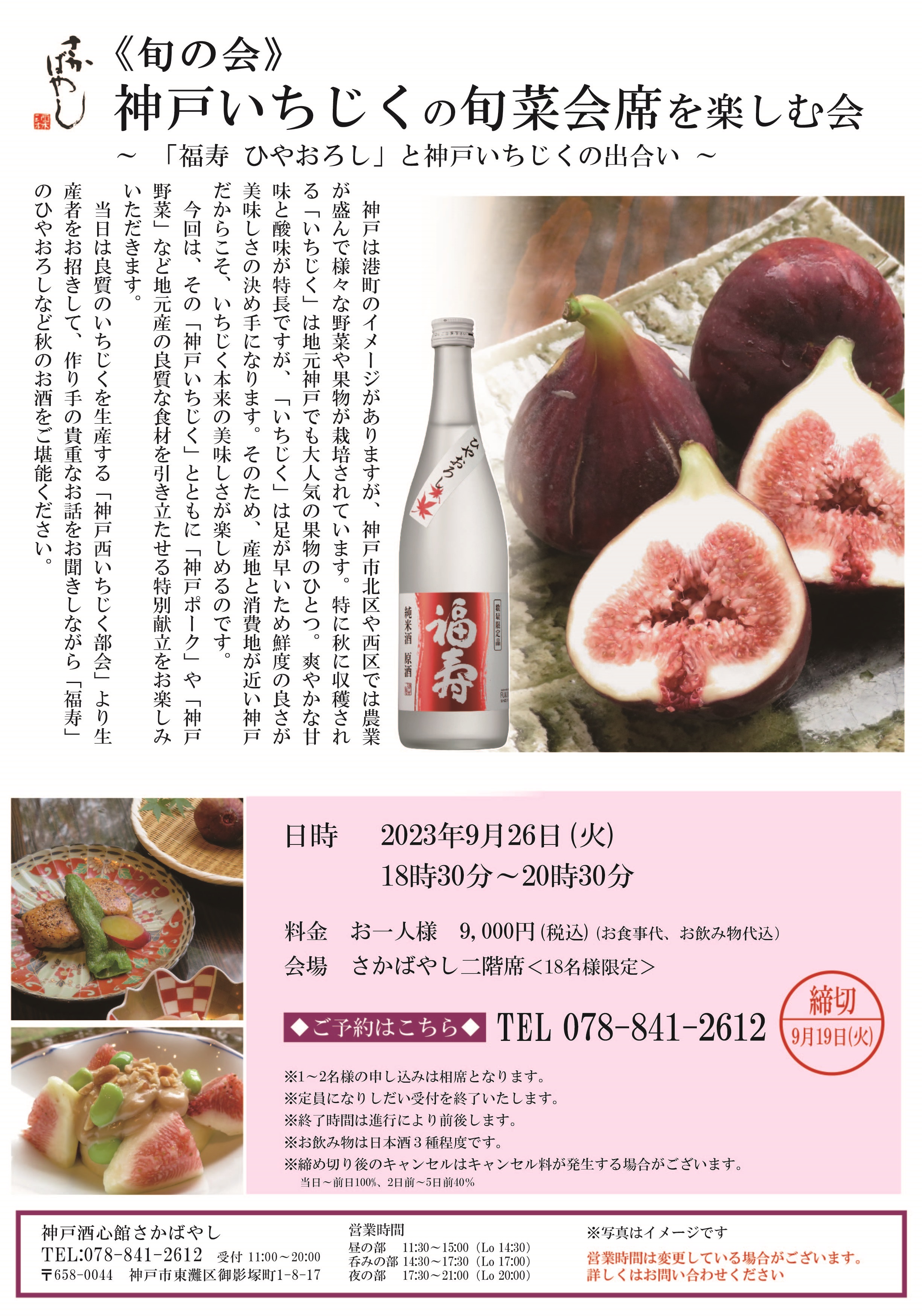蔵の料亭「さかばやし」では、旬の食材と福寿の日本酒を味わう限定イベント「旬の会」を開催しております。 9月は「神戸いちじくとひやおろしを楽しむ会」を開催し、多くのお申し込みをいただき、キャンセル待ちが出るほどの大盛況とな […]