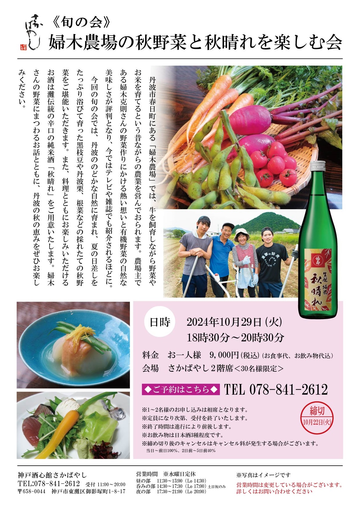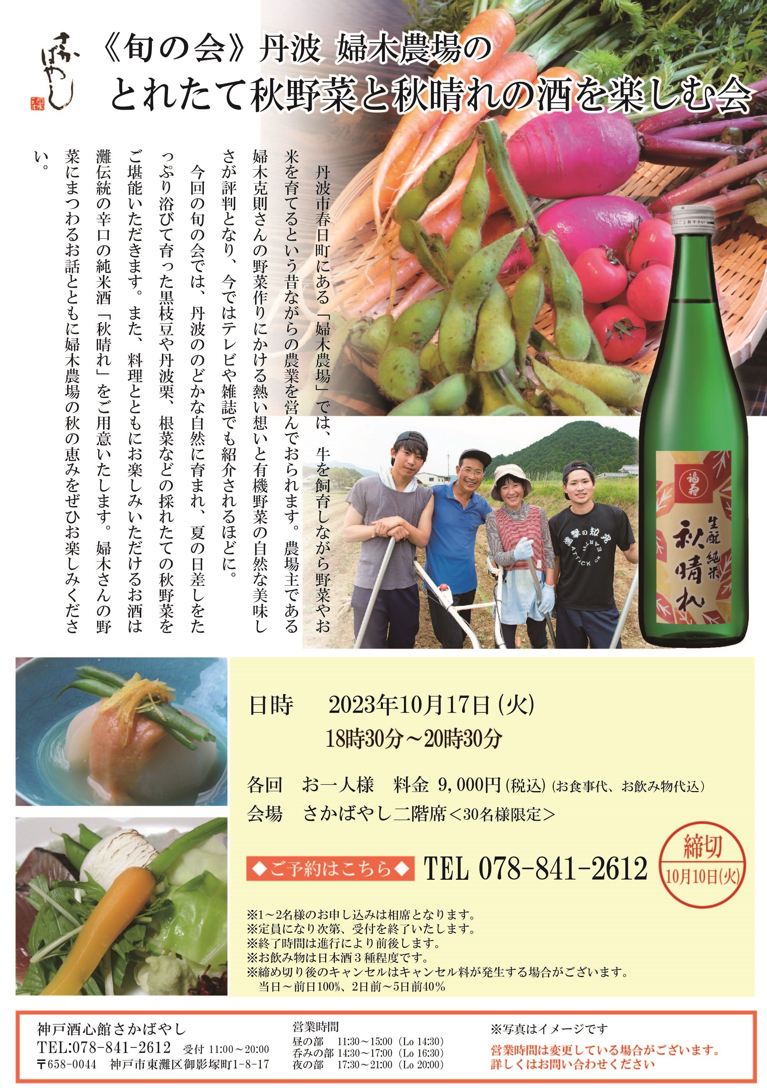 旬の会 婦木農場の秋野菜と秋上がりの酒を楽しむ会 丹波市春日町にある「婦木農場」では、牛を飼育しながら野菜やお米を育てるという昔ながらの農業を営んでおられます。農場主である婦木克則さんの野菜作りにかける熱い想いと有機野菜 […]