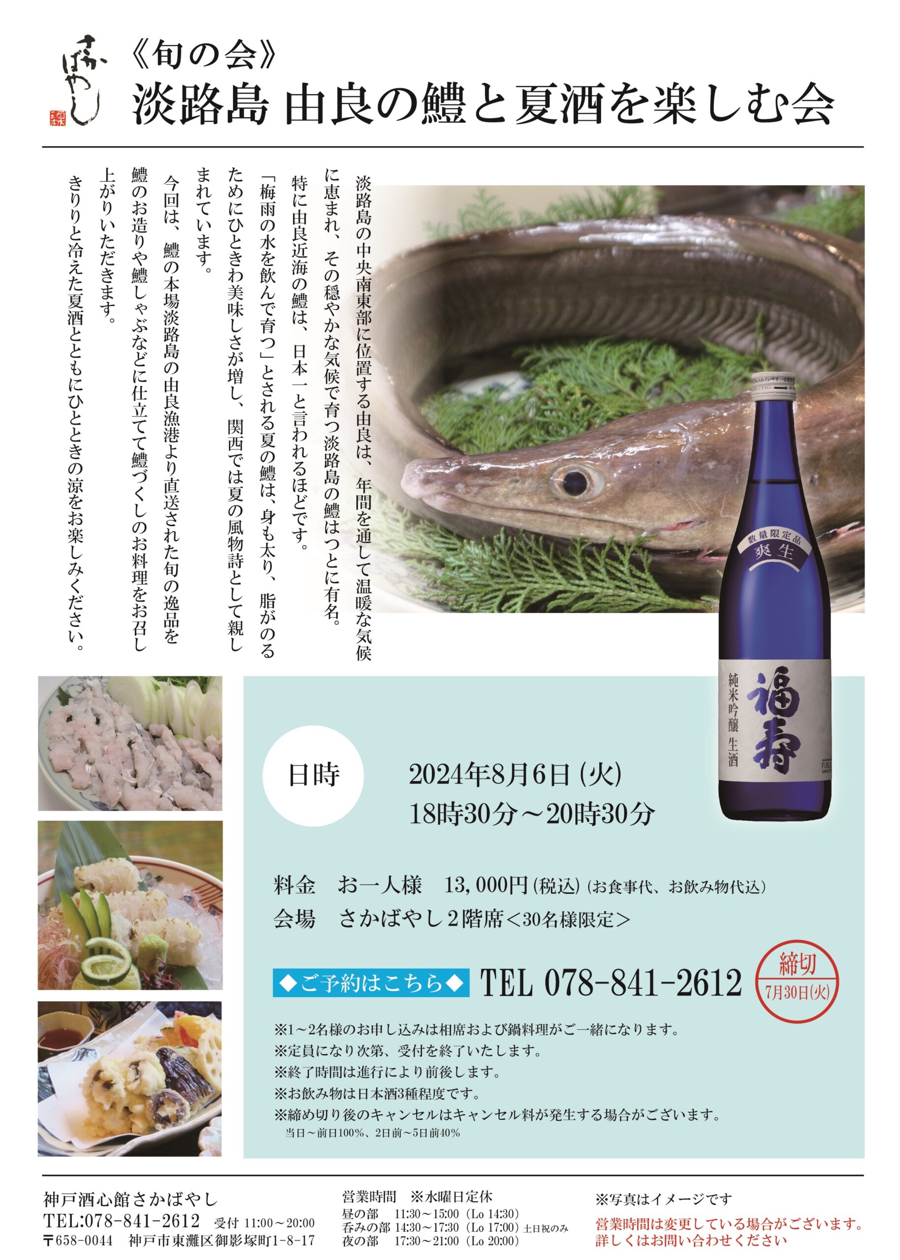 淡路島 由良の鱧と夏酒を楽しむ会 淡路島の中央南東部に位置する由良は、年間を通して温暖な気候に恵まれ、その穏やかな気候で育つ淡路島の鱧はつとに有名。 特に由良近海の鱧は、日本一と言われるほどです。 「梅雨の水を飲んで育つ […]