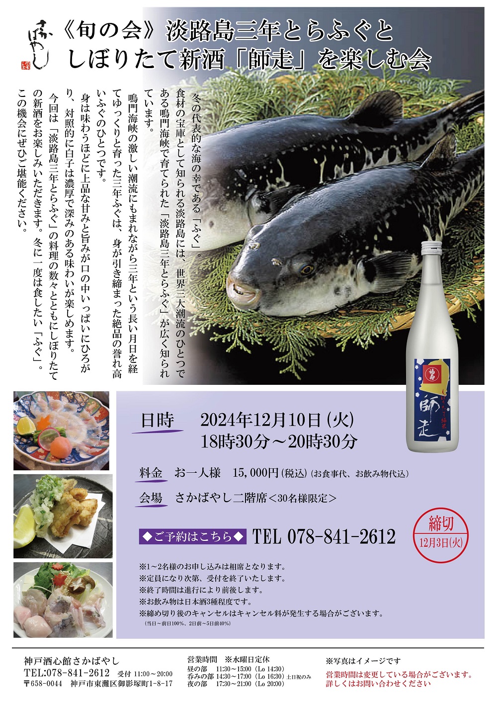 (2025.12.9)淡路島三年とらふぐとしぼりたて新酒「師走」を楽しむ会