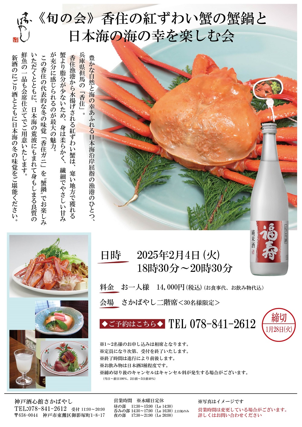 (2025.2.4)香住の紅ずわい蟹の蟹鍋と日本海の海の幸を楽しむ会