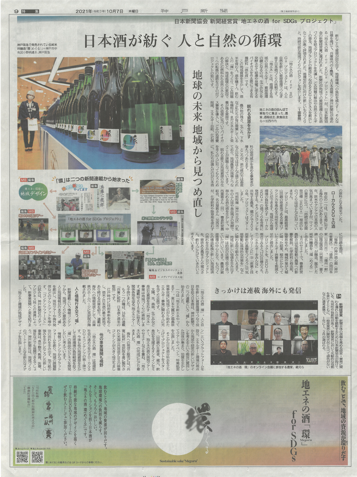 2022年4月14日(木)の神戸新聞の22面で地エネの酒「福寿 純米吟醸山田錦 環」を使ったデザートカクテル「めぐるシェイク」が掲載されました。 めぐるシェイクの詳しい情報はこちらからどうぞ