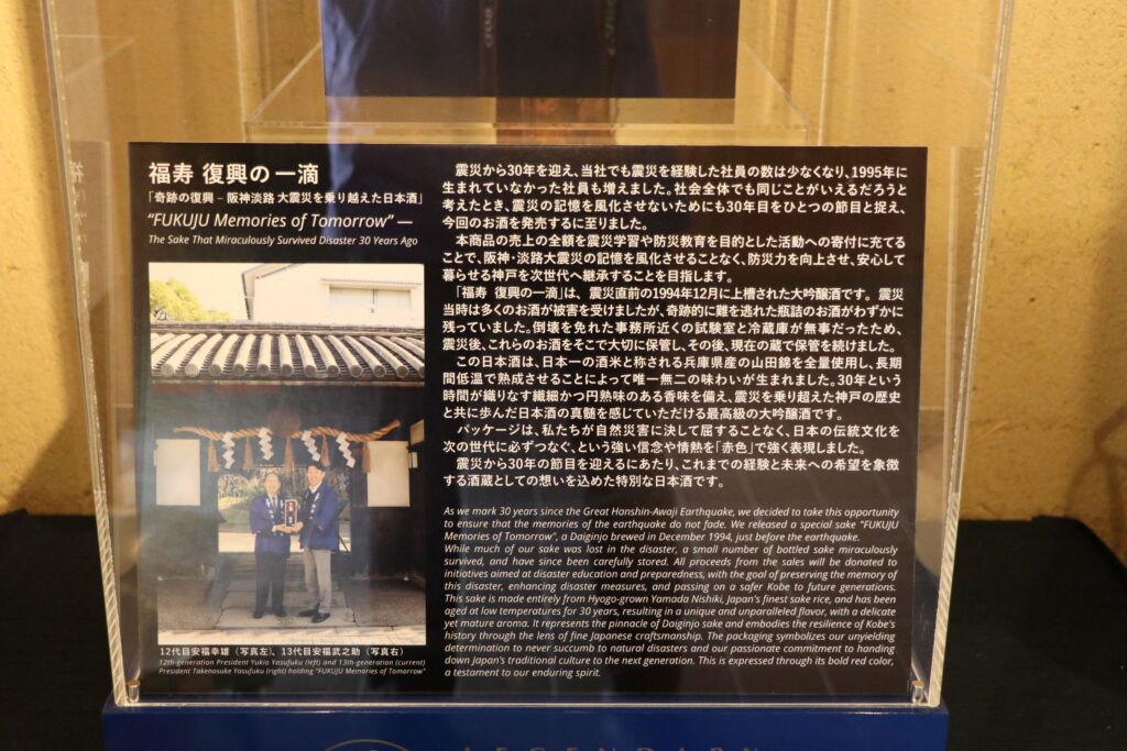 2024年12月10日申し込み受付を開始し、2025年1月17日に発売した阪神淡路大震災から30年の祈りと希望を込めた唯一無二の日本酒「福寿 復興の一滴」(5本限定、1本100万円、売上全額寄付)。