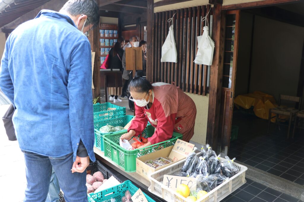 長屋門では大沢農家より採れたての秋野菜が皆様をお迎えいたします。
