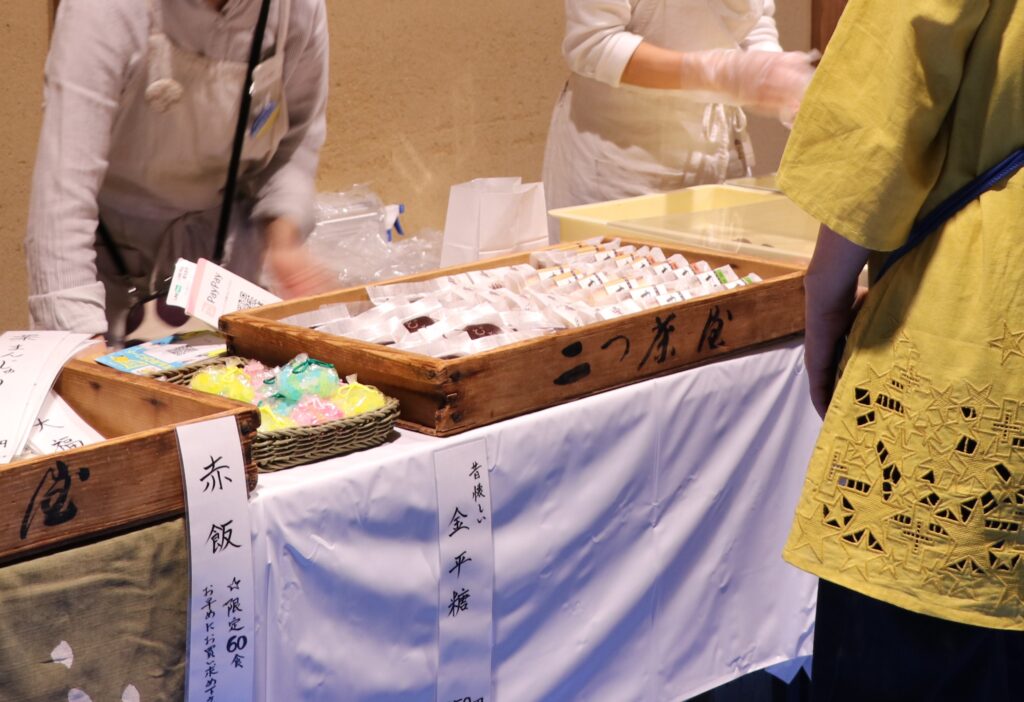 和菓子の名店「ふたつぢゃや」より彩りの和菓子を、神戸の老舗蒲鉾屋「丸八蒲鉾」からは鱧入り天ぷらをお酒とお楽しみいただきます。