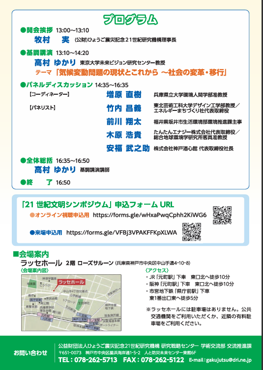 主催 公益財団法人ひょうご震災記念21世紀研究機