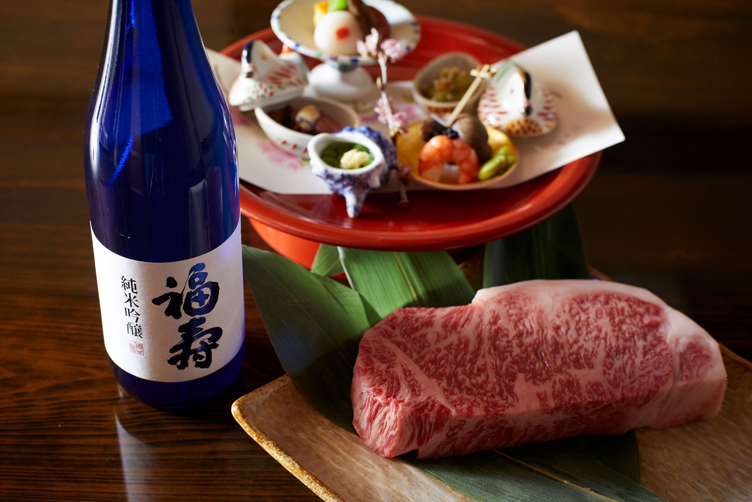最高品質の「福寿」のテイスティング体験に加えて、神戸ビーフの会席料理と日本酒の極上のペアリングを満喫。