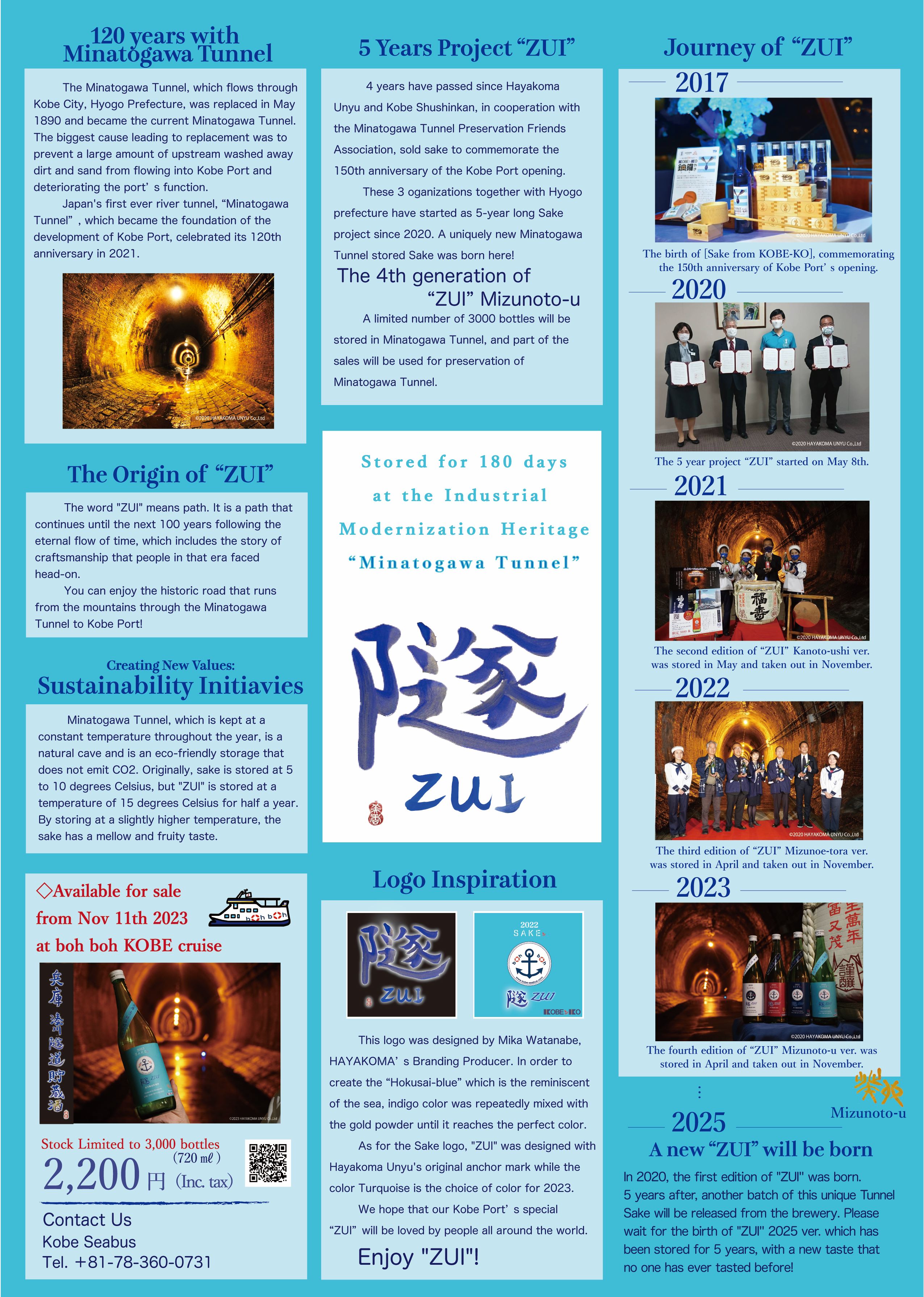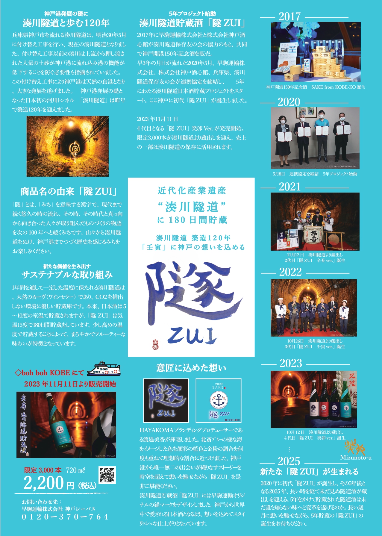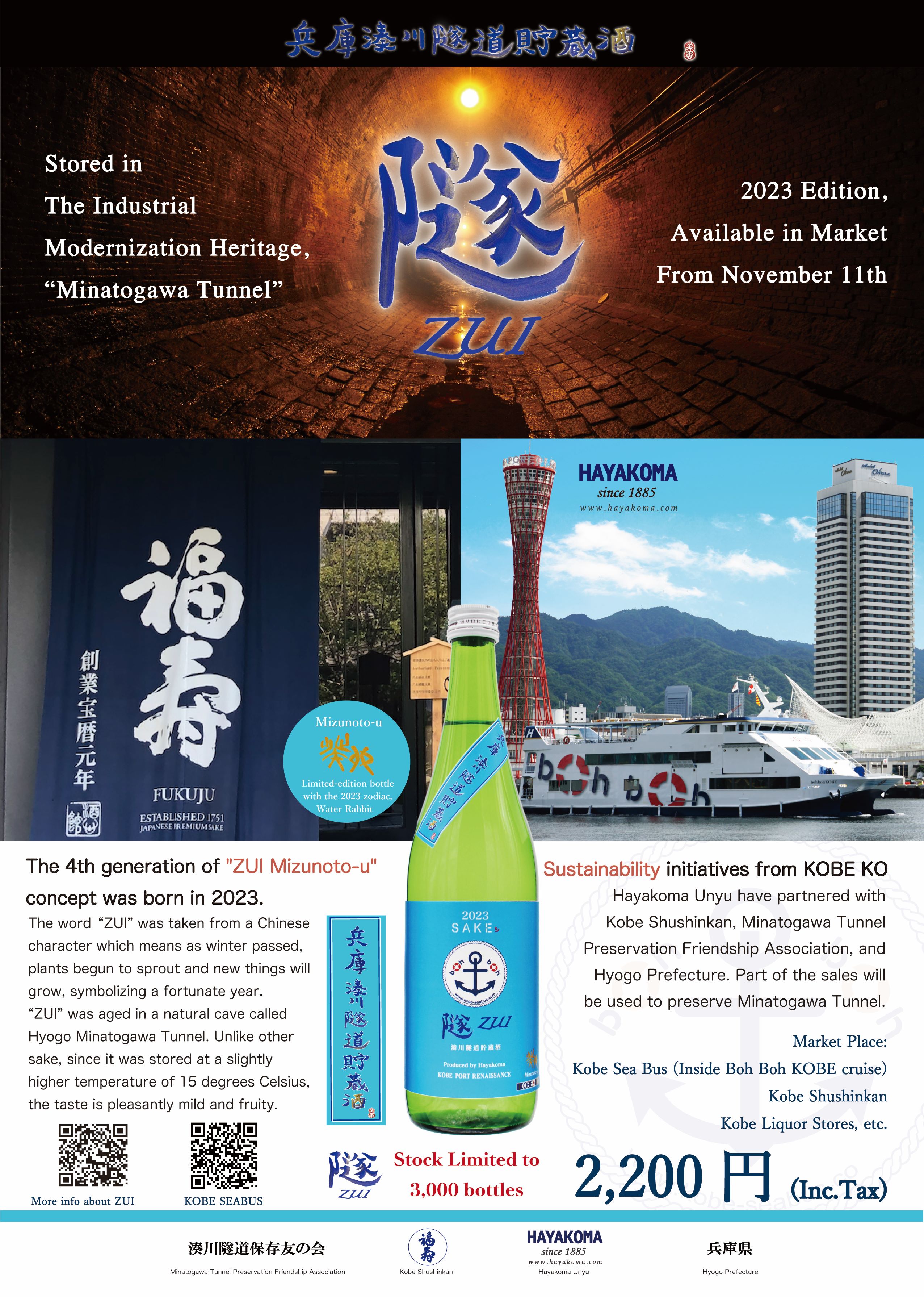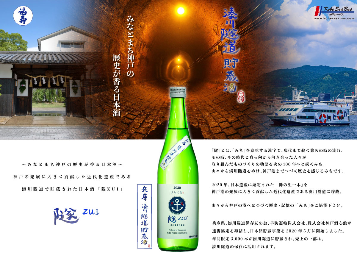 日本酒「隧ZUI」は、2020年の日本遺産に認定された「灘の生一本」を、神戸港の発展に大きく貢献した近代化遺産である湊川隧道に貯蔵しています。