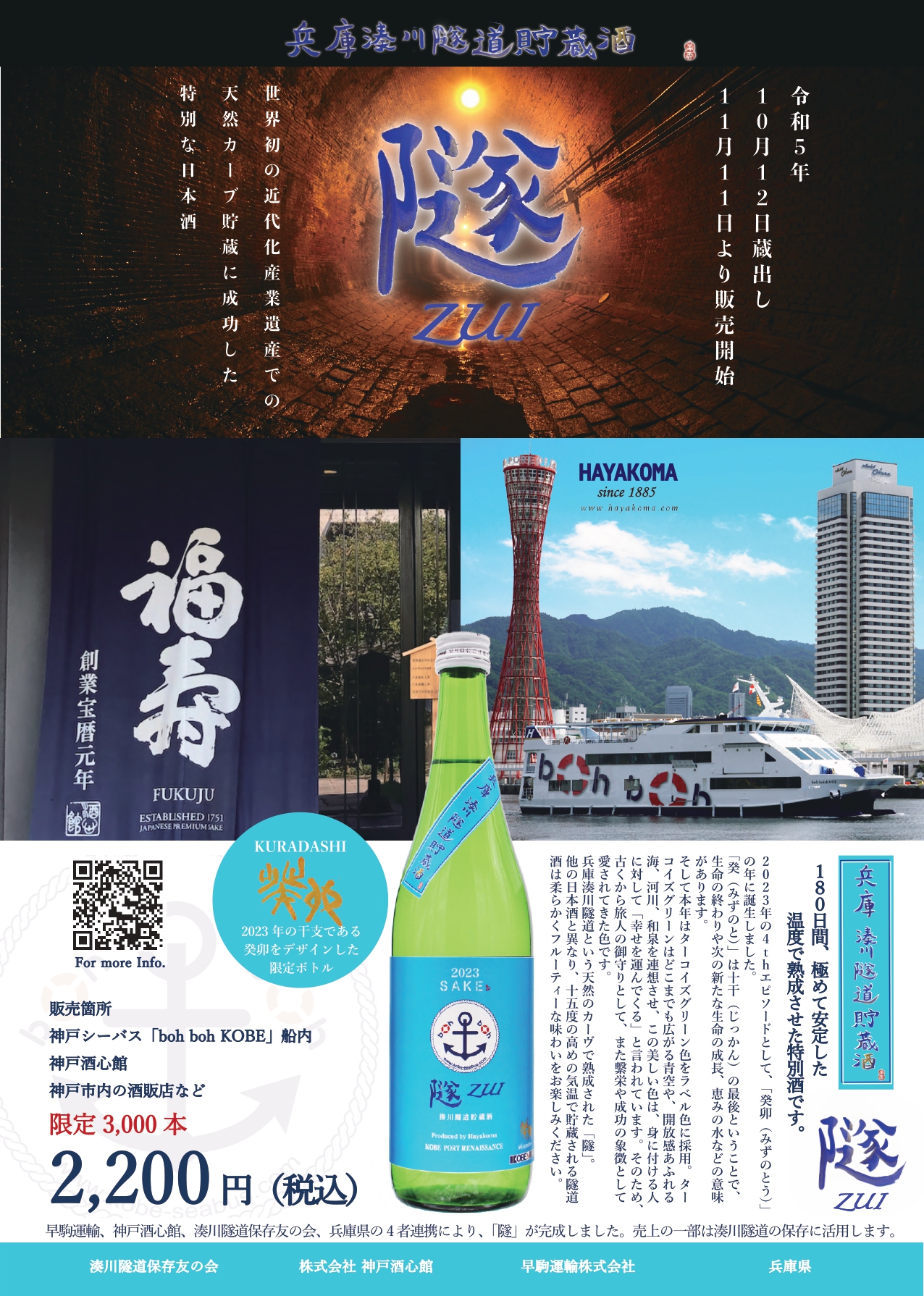 神戸の発展に大きく貢献した近代化遺産である湊川隧道で貯蔵された日本酒「隧ZUI」が2025年11月8日(土)より発売開始されます。