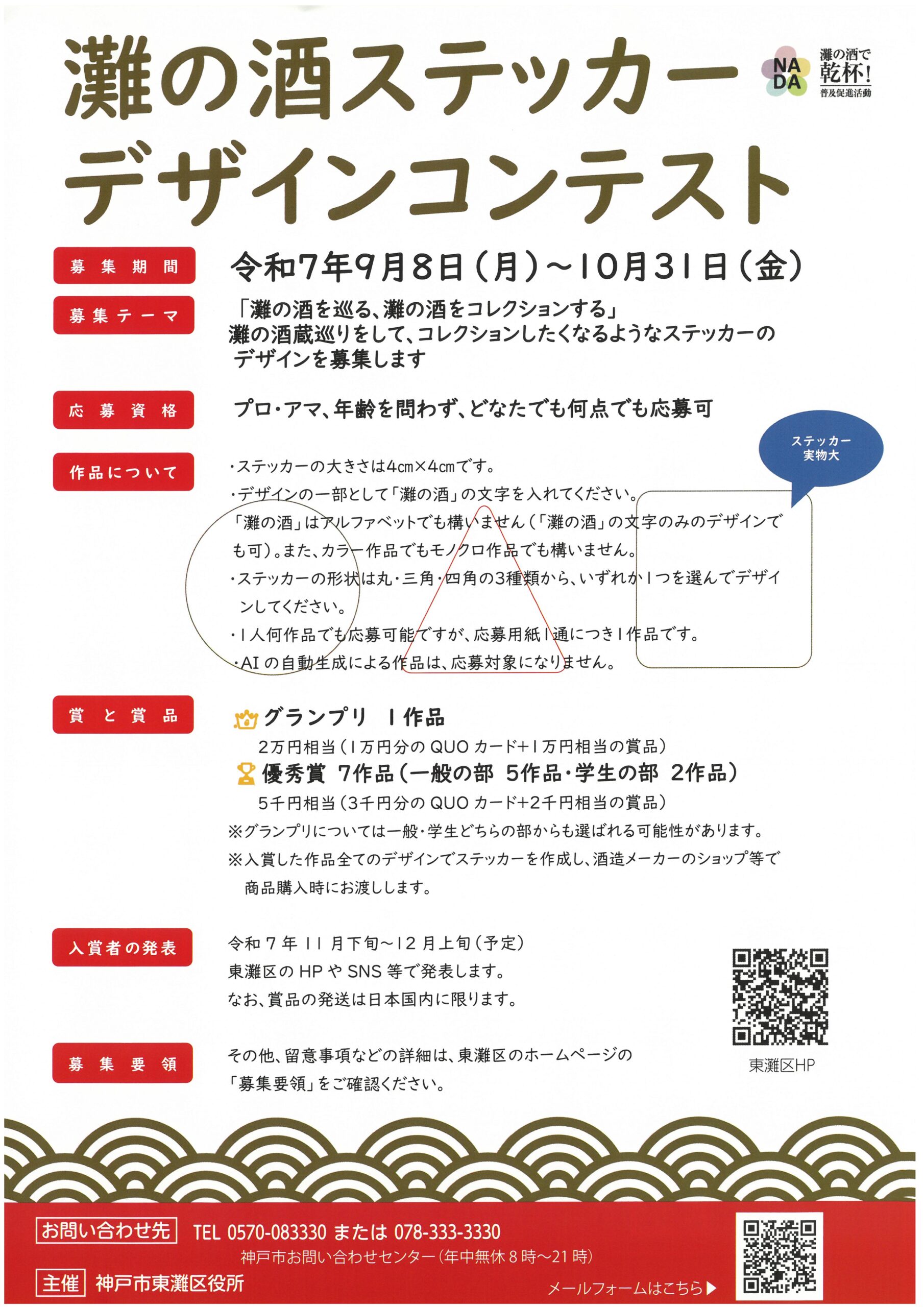 神戸市東灘区役所の主催で「灘の酒ステッカーデザインコンテスト」が開催されます。