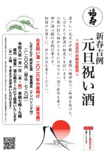 新年1月1日のみ「元旦祝い酒」の初売りを行います。