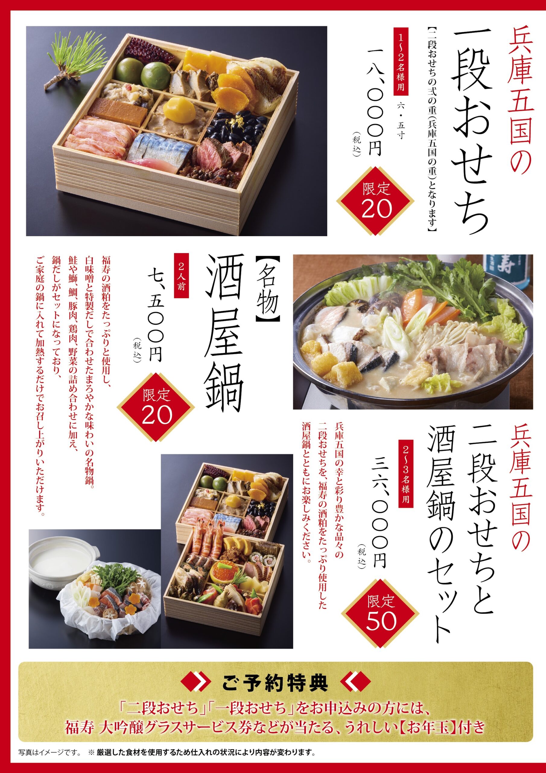 新年は、おめでたい「福寿」のお酒と「おせち」で新しい年の幕開けを迎えられてはいかがでしょうか。
