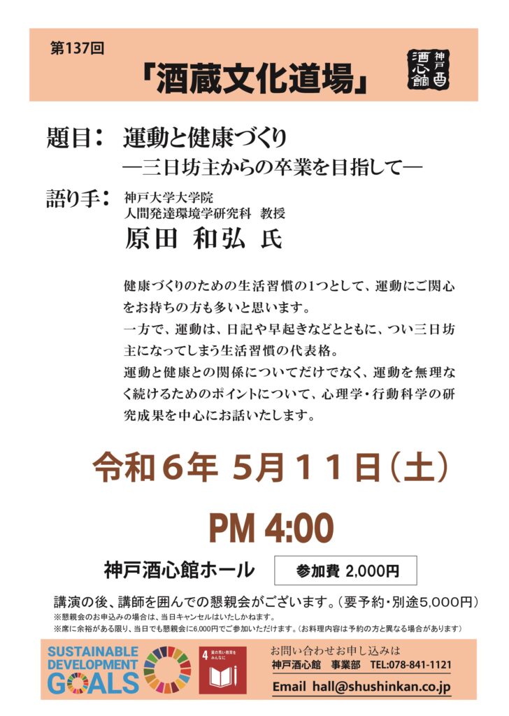 【第137回酒蔵文化道場】運動と健康づくり(2024.5.11) <レポート有>