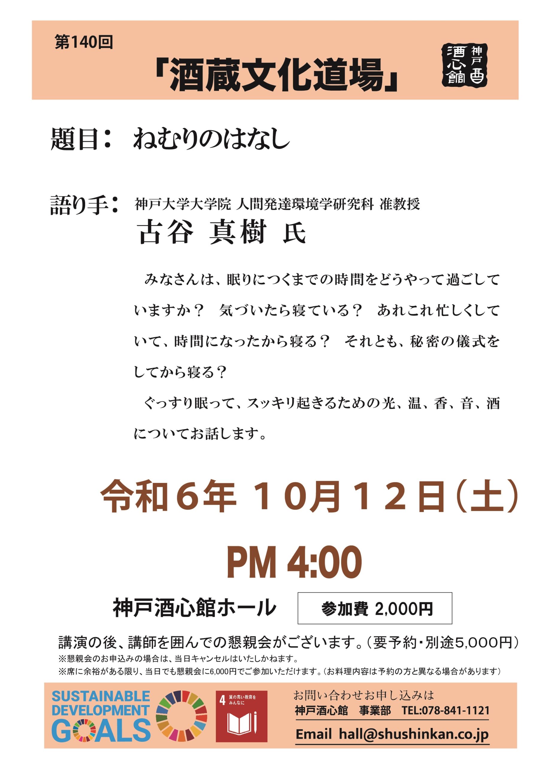 【第140回酒蔵文化道場】ねむりのはなし(2024.10.12)<レポート有>