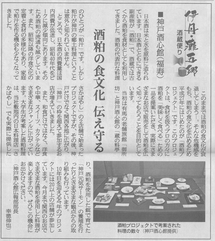 2024年3月13日(水)産経新聞「伊丹・灘五郷 酒蔵便り」