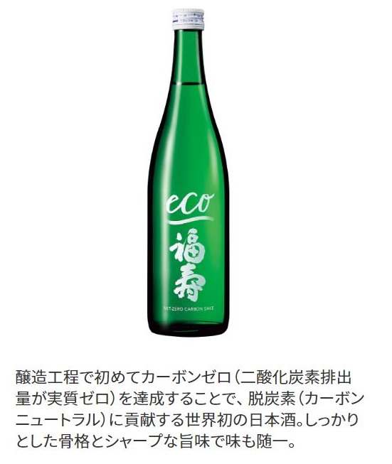 TSUNAGU ACTION WEEKは「食の意識を高めることが、サステナブルの第一歩。」のカテゴリーで、カーボンゼロのお酒として「福寿 純米酒 エコゼロ」が紹介されています。
