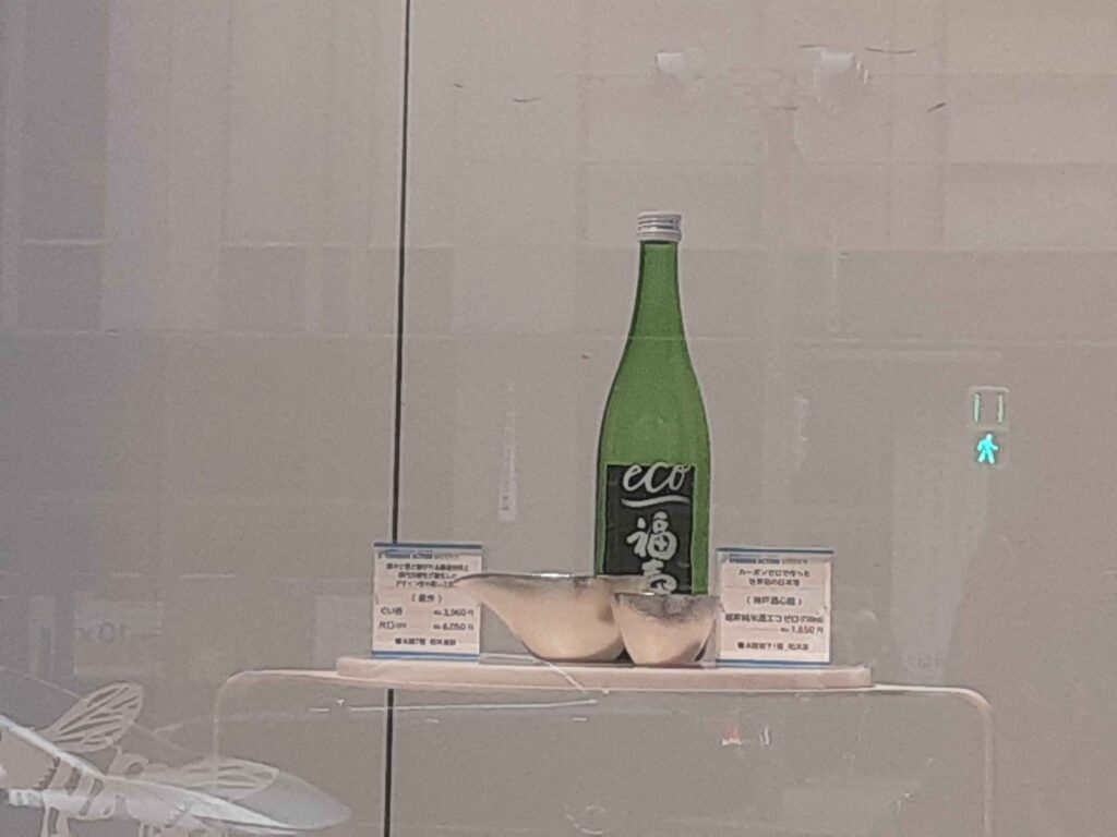 また、日本橋高島屋の店頭ショーウインドーで「福寿 純米酒 エコゼロ」が展示されています。